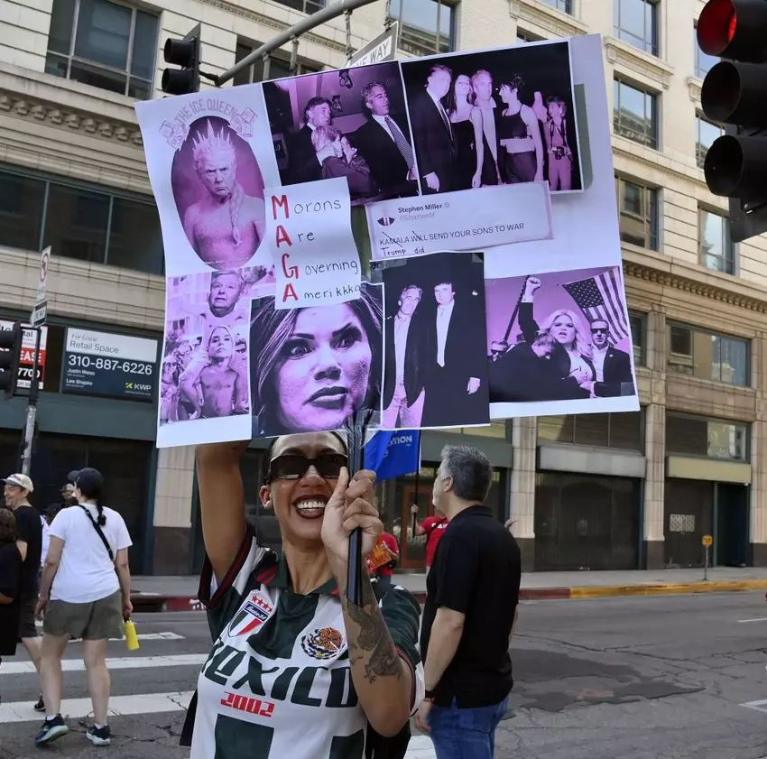 Protestors gather at the "No Kings" demonstration in Los Angeles. Photo by Jim Ruymen/UPI