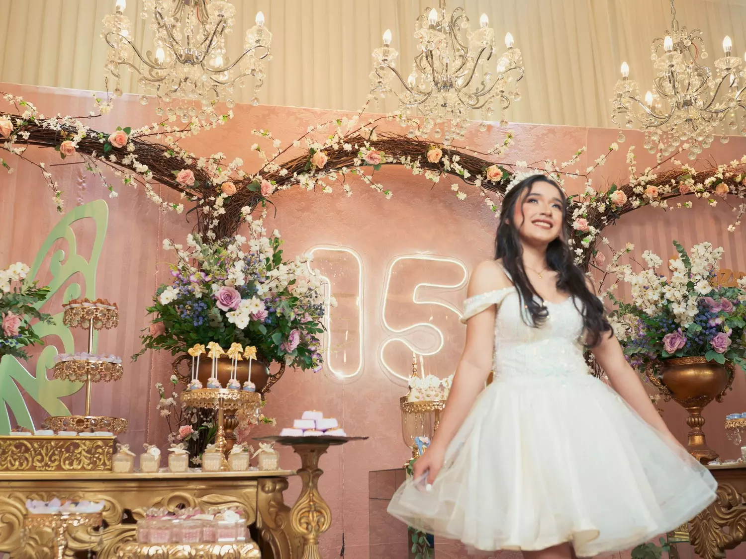 A rite of passage into young adulthood: a long dress, a waltz, and speeches from the family. Sometimes there is a mass or symbolic ceremony, and godparents accompany the young woman. The traditional "changing of shoes" takes place, along with the presentation of a ring or the birthday girl's last doll. The celebration concludes with dancing for everyone and a dessert table. In many countries, simpler celebrations are now common.