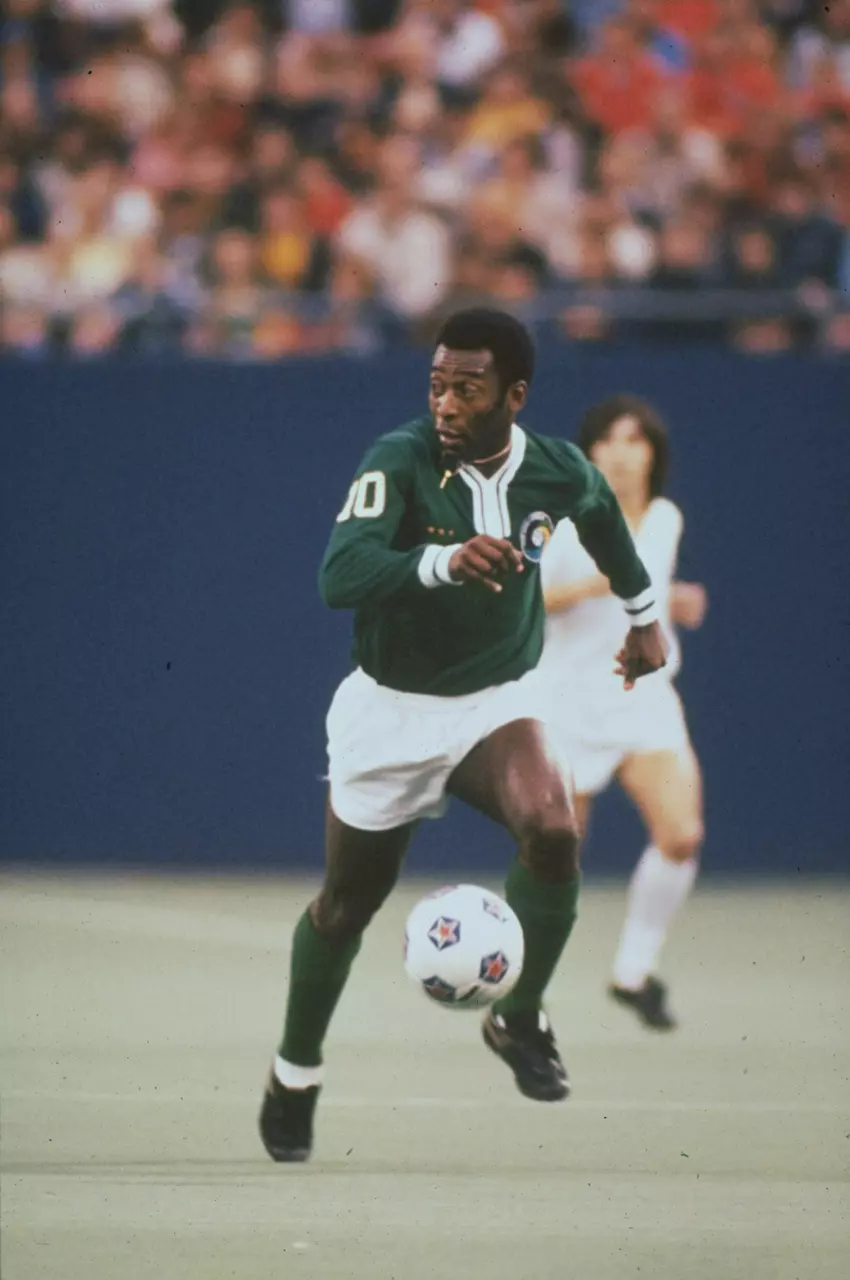 In an undated image, Pele of New York Cosmos in action during an American Soccer League match.
