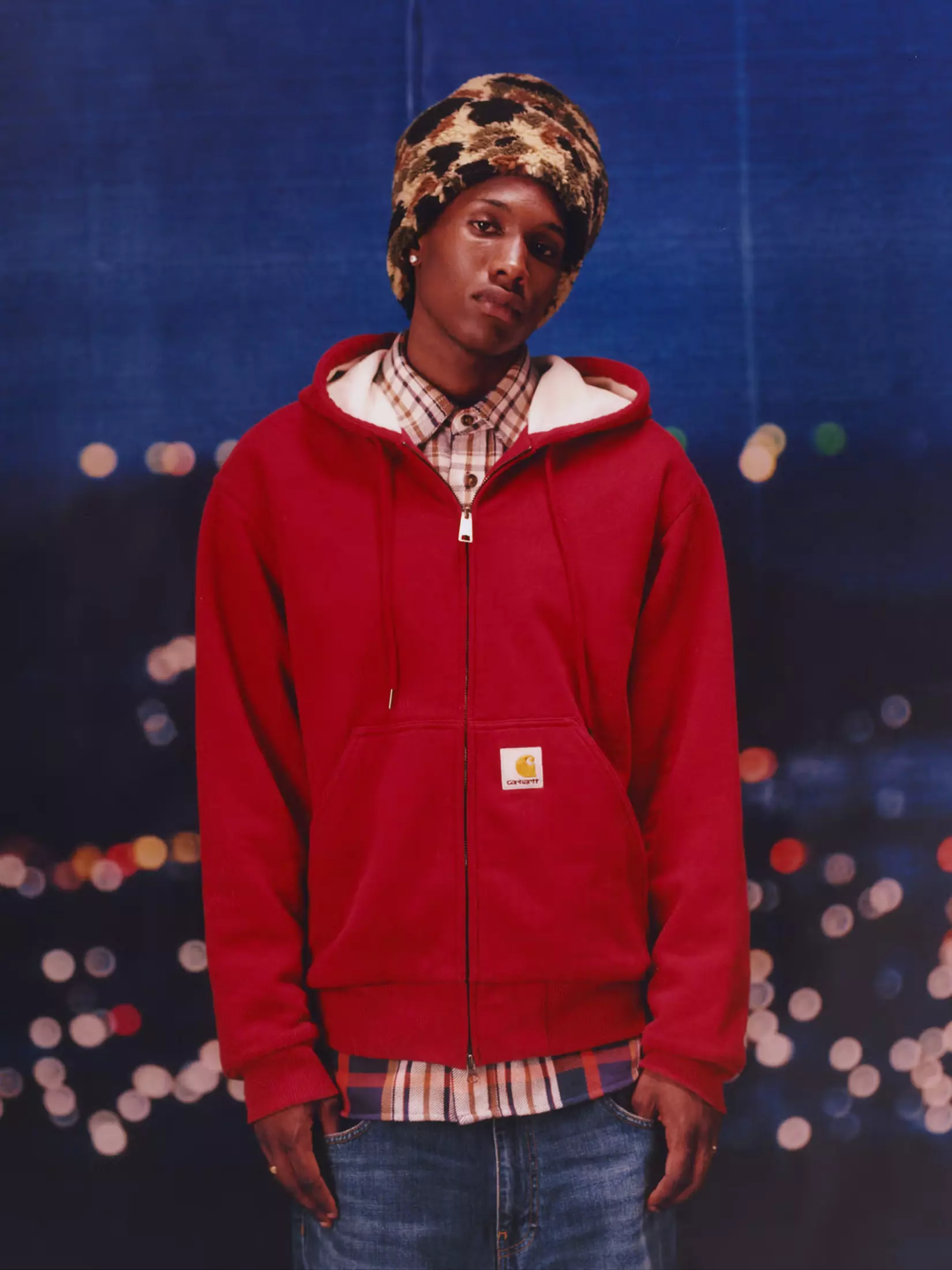 The Carhartt patch is one of the most recognizable logos on the planet. This look pays homage to Carhartt’s workwear legacy while also adding in a little dapper with an oversized plaid button-up.