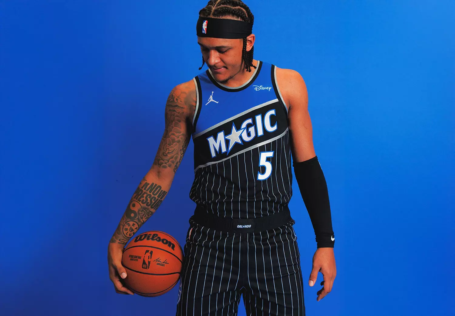 The Orlando Magic’s entire uniform lineup received a revamp for the 2026 NBA season. The pinstripes are a callback to the Magic’s original uniforms, worn from 1990 to 1998.
