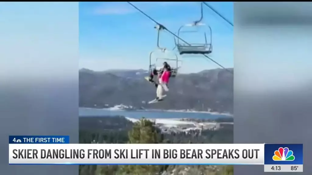 Feb. 27 (UPI) -- A skier who slipped out of her seat on a California ski lift was kept from falling by her sister and a friend -- and her dangling was caught on camera.