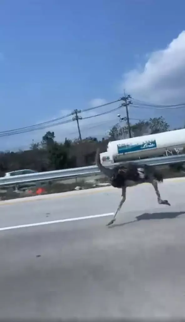 The 5-month-old ostrich followed the truck onto the highway and ran nearly 10 miles down the busy road toward Rayong.