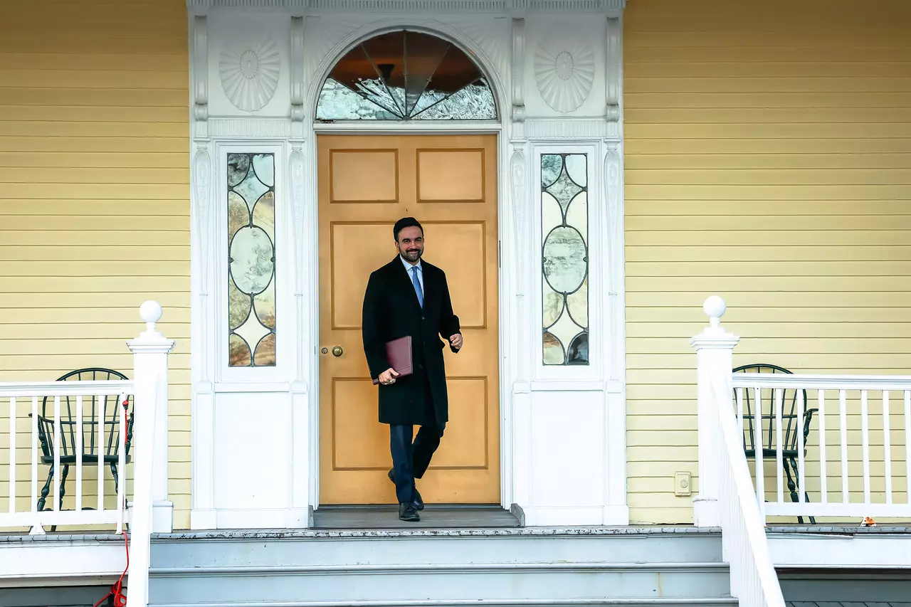 New York City Mayor Zohran Mamdani arrives for a press conference during moving day at Gracie Mansion on Monday, Jan. 12, 2026, in New York City.