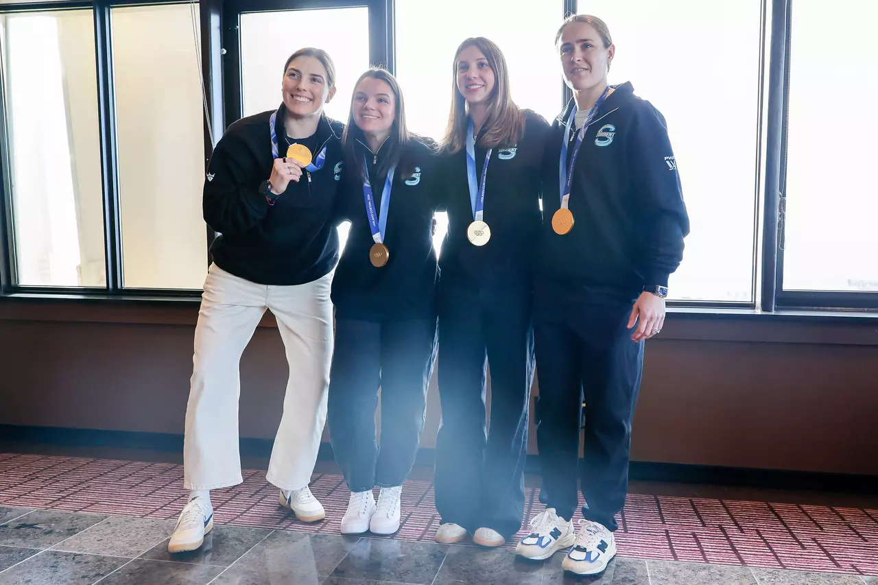 SEATTLE — The four Torrent players who won Olympic gold for Team USA were welcomed back from Italy with a celebration at the Space Needle on Wednesday. City Council members, the Seattle Sports Commission, media members and even two-time FIFA World Cup winner Megan Rapinoe gathered in the Puget Sound Room overlooking Chihuly Garden and Glass and Elliott Bay to receive Torrent captain Hilary ...