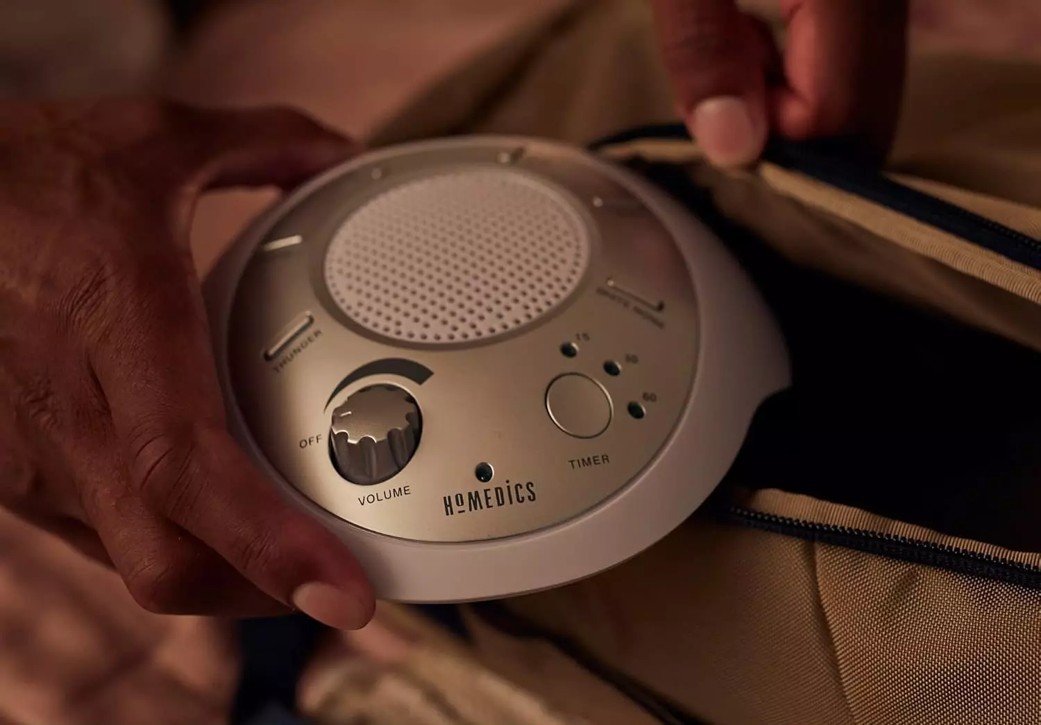 Buy from AmazonThis small device emits soothing sounds that promote relaxation. It has an auto shutoff feature and comes with 6 different soundscapes, most of which mimic natural environments. You can choose from white Noise, thunder, ocean, rain, summer night or brook.