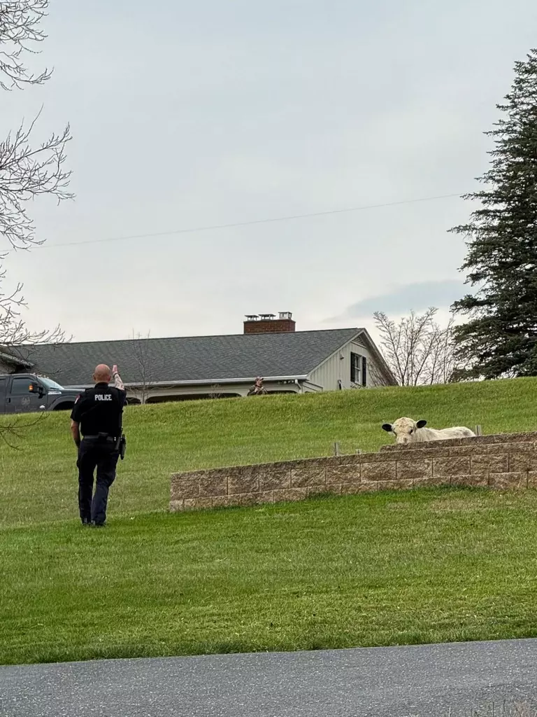 Police updated the post at 1:45 p.m. Thursday to say the bull had been tranquilized by a veterinarian and would be transported back to its owner.