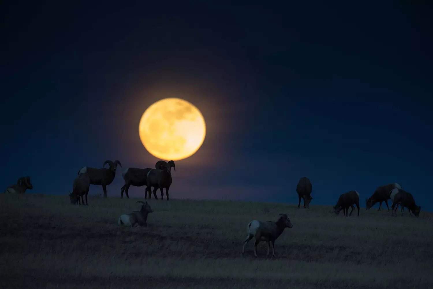 “A park ranger stands inside an Ancestral Puebloan ring of stones and points his laser to a planet in the night sky at Aztec Ruins National Monument, New Mexico.”
