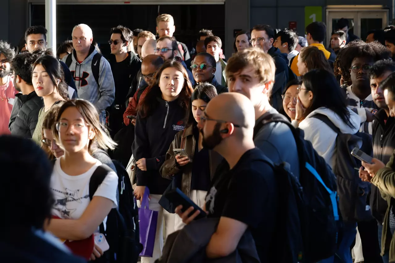Commuters at the Redmond Technology Station catch the Microsoft Connector in the afternoon in Redmond on Tuesday, Oct. 14, 2025.