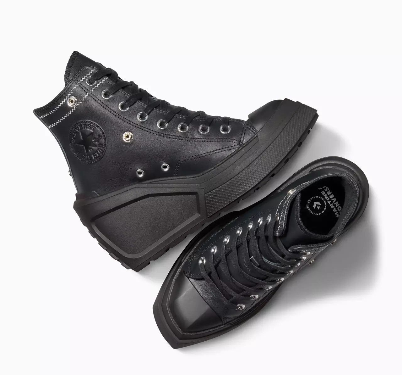 According to Converse, “The newest addition to the De Luxe family provides nearly four inches of elevation and touts an asymmetric squared toecap and full leather upper, embracing the classic design language of the beloved Chuck Taylor All Star while boasting a boldness all its own.”